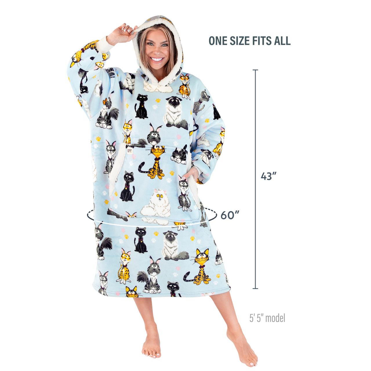 Add some more attitude and comfort to your life with our Cattitude Blanket Hoodie. This blanket hoodie features a super cute all over cat design with lots of different cat breeds. Our blanket hoodies are a cute over sized hoodie that is one size fits all. Making it the perfect gift for anyone! Our Blanket Hoodies are made with 100% super soft coral fleece, making them perfect for snuggling on the couch on a cold day. They also feature big kangaroo pockets perfect for those late night snacks!