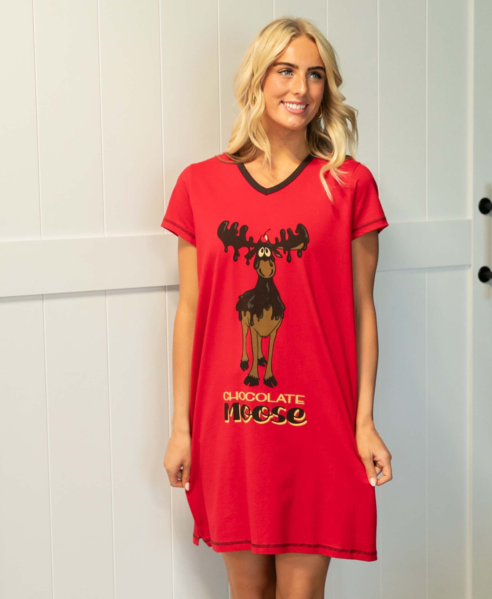Add some sweetness to your sleepwear with our Chocolate Moose v-neck nightshirt. This nightshirt features a cute Chocolate covered moose. Made with 100% combed cotton our nightshirts are cozy and cute! All orders over $75 receive free shipping, add some more sweetness to your sleepwear and check out our Chocolate Moose sleepwear collection.