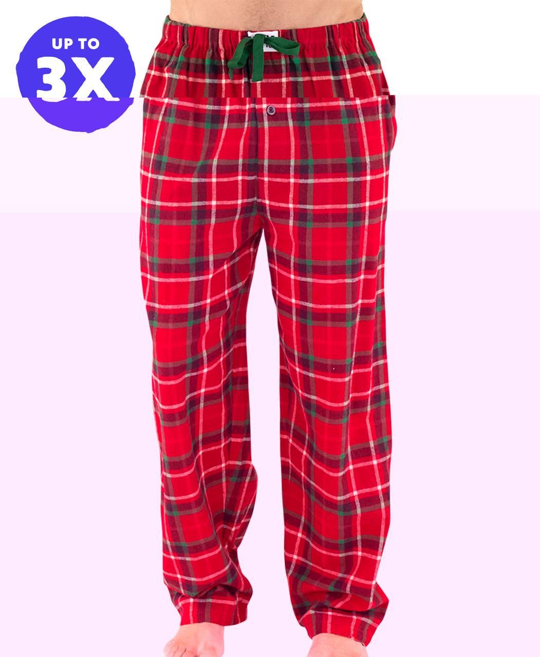 Be warm and cozy this Christmas season with our Christmas plaid men's flannel pajama pants. These Christmas colored pajama pants can be mixed and matched with our cute and fun Most Likely Family matching pajama tees. Made from soft, cozy flannel, these roomy flannel pants are cut for men and women. PJ Pants have a button fly, a drawstring, pockets and encased elastic waistband for a relaxed fit. Pant Only. Adult sizes: XS-XXXL.