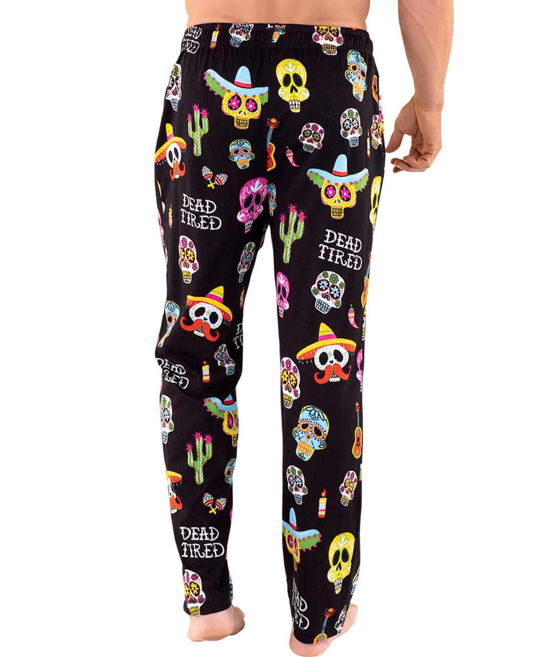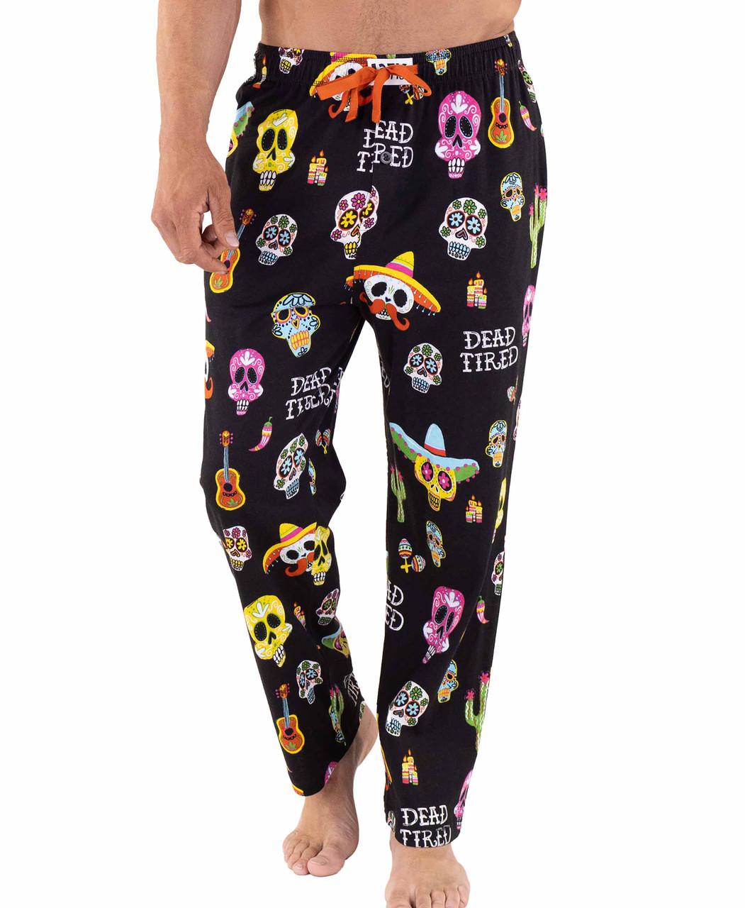 Add a little party to your bedtime routine with our Dead Tired men's pajama pants. These pants feature a fun and colorful sugar skull design perfect for any fiesta or siesta. These roomy jammies are made from soft 100% combed cotton knit and come in lots of wild patterns made for both men and women. Pants have a fly, a drawstring and pockets. PANTS ONLY