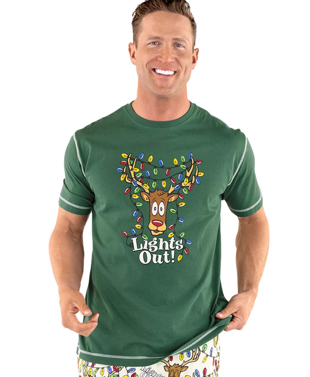 You'll be Lights Out in no time with our Christmas Lights Out reindeer PJ tee. This roomy pj tee will keep you cozy all night long. Matching pj pants can be purchased separately. Adult Sizes: XS- XXL