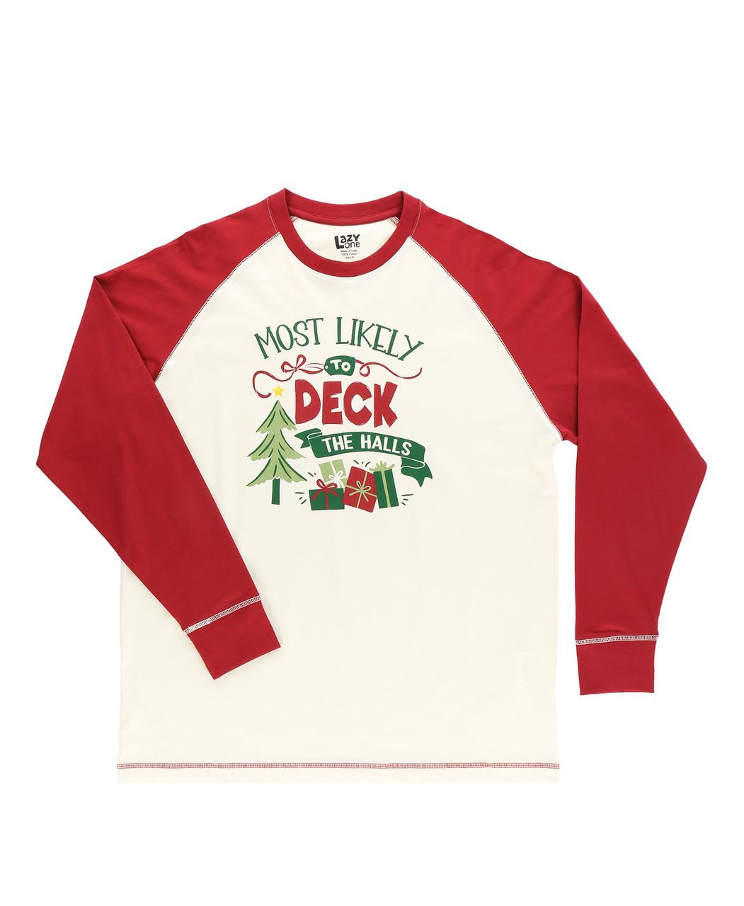 Deck the halls this Christmas Season with our Most Likely To Deck the Halls long sleeve pajama tee. This pajama tee features a cute Christmas themed design. Made with 100% combed cotton it will keep you comfortable and warm all sleep long. Our Deck the Halls pajama tee can be mixed and match with our Women's pajama pant and Men's pajama pant. Matching pj pants can be purchased separately. MEN Sizes: XS- XXXL.