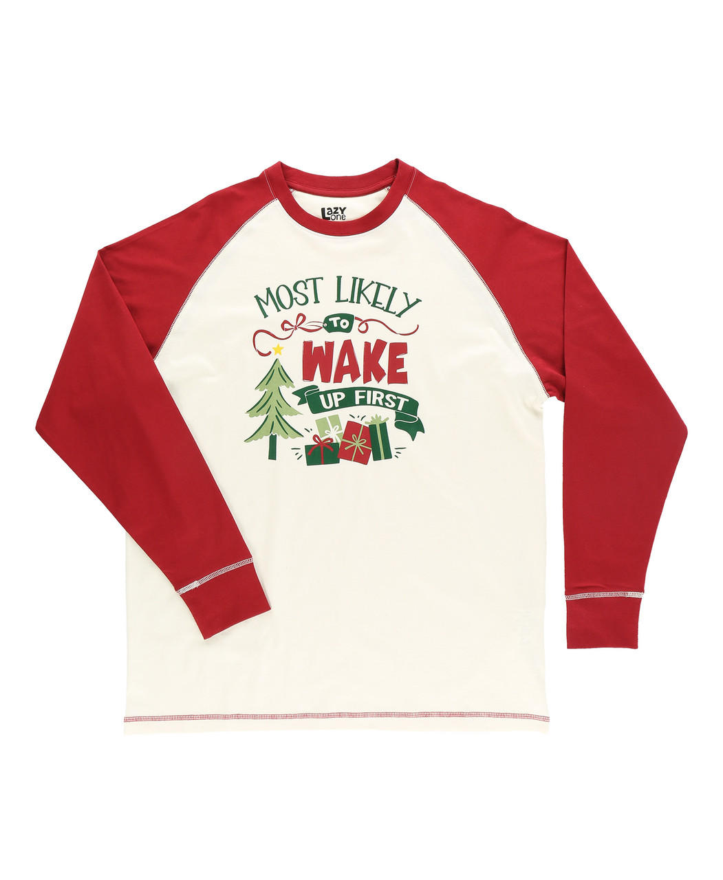 When it's time to wake up on Christmas day do it in style and in the comfort of our Most Likely Wake Up First long sleeve pajama tee. Made with 100% combed cotton it will keep you comfortable and warm all sleep long. Our Wake Up First Long Sleeve pajama tee features a fun Christmas design and can be mixed and match with our Women's pajama pant and Men's pajama pant. No matter how early you might wake up you will be comfy and cozy in this pajama tee. Matching pj pants can be purchased separately. MEN Sizes: XS- XXXL.
