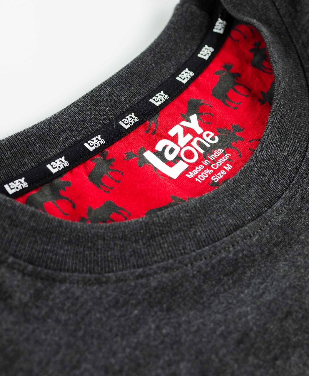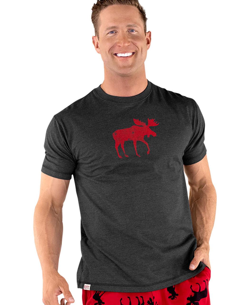 Keep your nightly wear simple and classy with our Classic Moose pajama tee! This roomy men's pj tee is charcoal black with a red moose, and their thinner fabric makes this tee great to sleep in. Matching pj pants can be purchased separately. Adult Sizes: XS- XXL