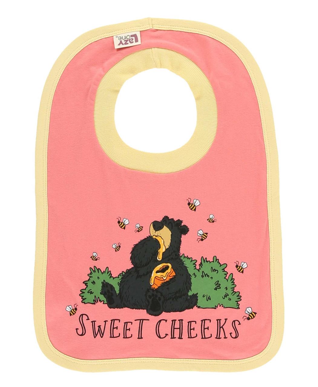 Their cheeks might be sticky with sweets, but their clothes don’t have to be! Our Sweet Cheeks Infant Bib features an adorable bear enjoying a honey pot, complete with buzzing bees and lots of charm. Made with 100% combed cotton for your messy eaters! All orders over $75 receive free shipping!
