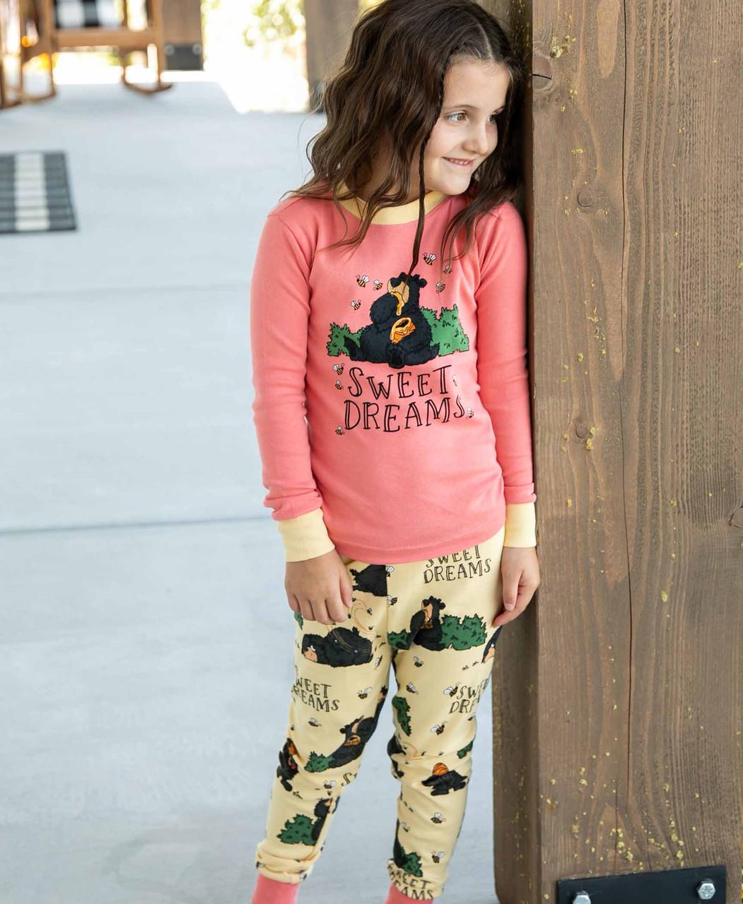 Your little one will be dreaming big and snoozing sweet in our Sweet Dreams Kid’s Pajama Set! Featuring a lovable bear enjoying a honey pot with bees buzzing nearby, this set is as adorable as it is comfy. Made from 100% combed cotton, these pajamas are a must have!