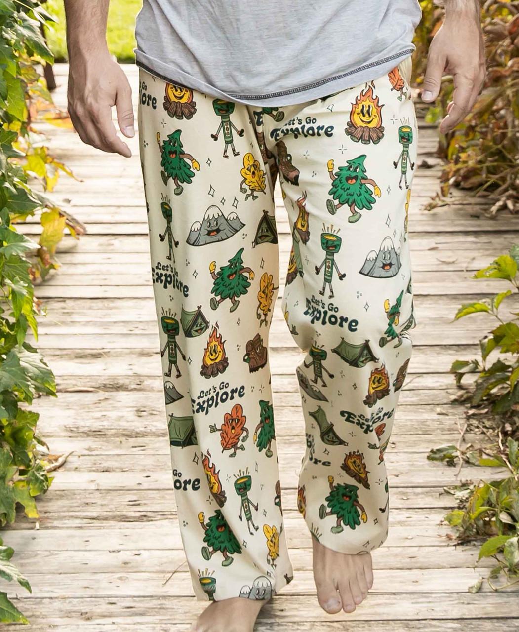 Nothing beats the classic comfort our men's pajama pants bring! You can go even more vintage with our Vintage Camping men's pajama pants. These pajama pants feature and all over camping cartoon character design in a vintage styling. Made for both men and women, these roomy lab jammies are made from 100% cotton. Pants have a fly, a drawstring and pockets. Matching tee can be purchased separately. Adult sizes: XS-XL