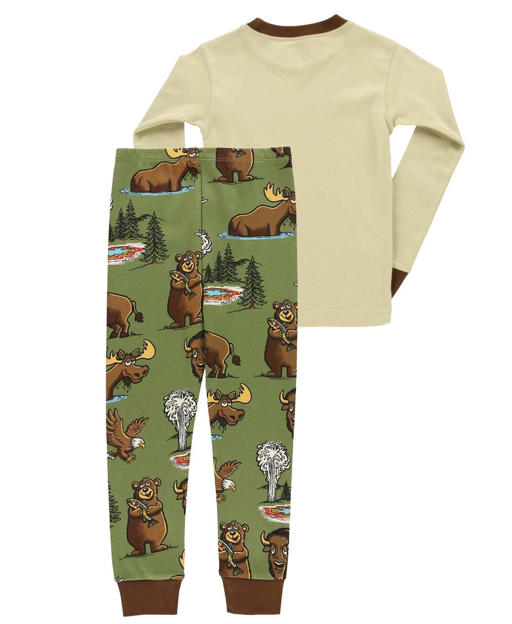 Let your little one enjoy Yellowstone all year long with our cute and fun Yellowstone kid pajamas. Each kid set comes with an all over Yellowstone critter and landmark print pant and a fun tee. This long sleeve pajama set is made with 100% combed cotton and features all the amazing wildlife you can find in Yellowstone National Parks.