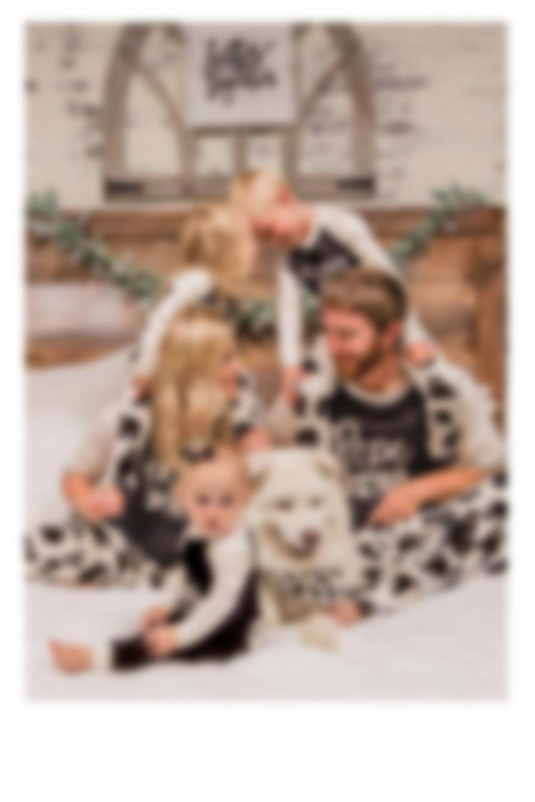 We offer many great matching dog pajamas that your pup will give four paws! When you think about classic pajamas, you may think of ticking stripes. This vintage look makes for an excellent matching pajama collection. For humans, the Ticking Bear Collection is offered in white with blue stripes for both the tops and bottoms. For your pup, the same pattern is replicated with blue cuffs. For our best-selling Family Bear Collection, your pooch gets to play a part too! This dog onesie features an all over bear pattern in black and white with black cuffs. If you’re loving the lumberjack plaid look, then the Bear Cheeks Plaid Collection is the “beary” one for you and your pup. Match together in red and black checkered plaid to be all the rage at holiday parties or year round! The Moose Fair Isle Collection offers a dog onesie with alternating moose, snowflakes, and design elements that are very popular around Christmas time, and year round. The red, white, grey, and blue colors will bring out the festivity in your family Christmas pajamas photos!